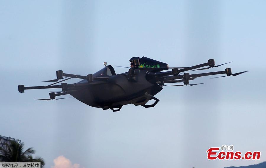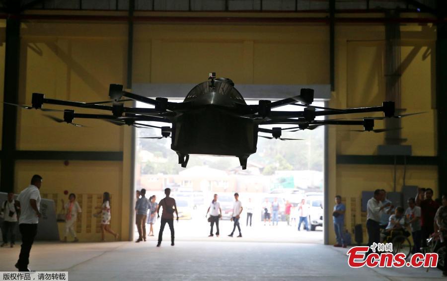 Filipino inventor Kyxz Mendiola tests his flying car during its launch in the province of Batangas, Philippines, September 23, 2018. Former dancer and camera operator Kyxz Mendiola flew and hovered for a few minutes in a single-passenger contraption powered by the “multicopter” technology commonly used in small unmanned drones. (Photo/Agencies)