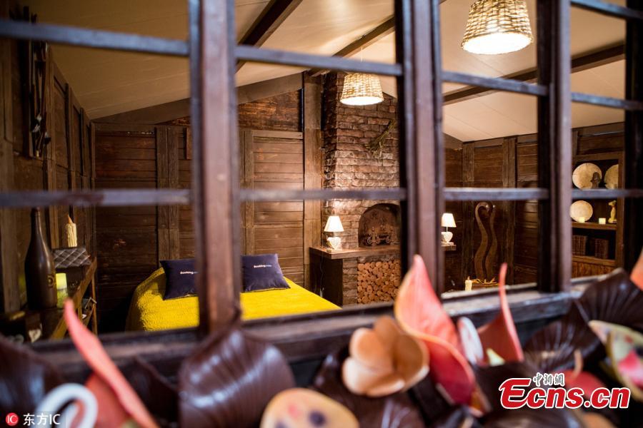 Artisan chocolatier Jean-Luc Decluzeau has designed and produced an 18-square-meter cottage made from 1.5 tons of chocolate in Sévres, France. It costs 50 euros per night and is only available on select dates. The cottage can accommodate up to four guests. (Photo/IC)