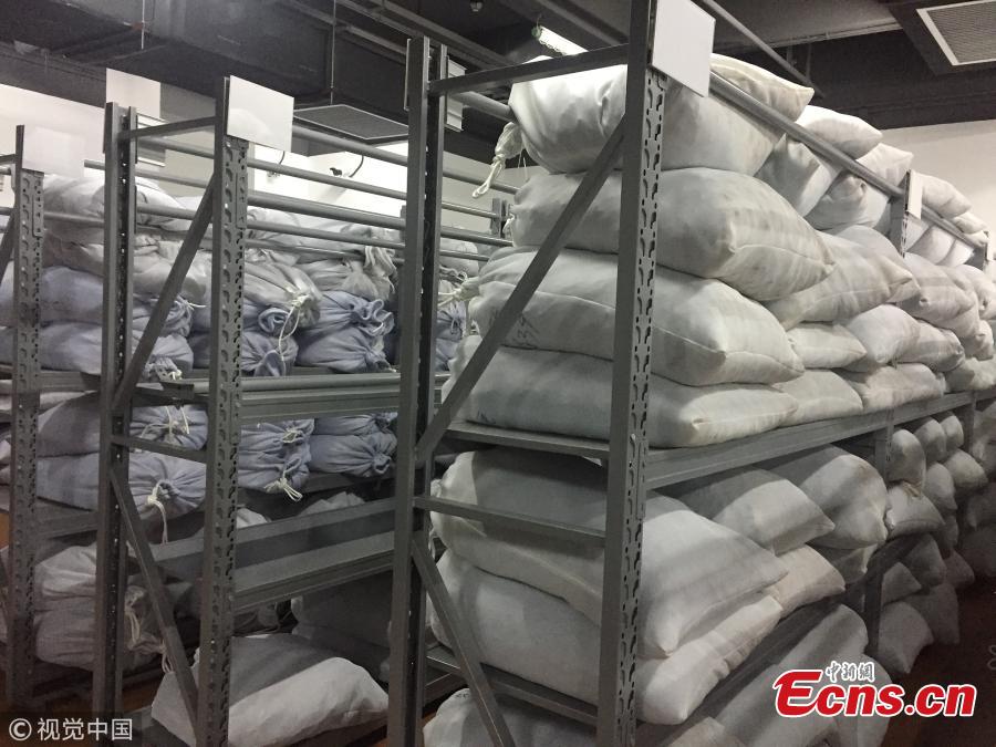 Photo taken on Sept. 26, 2018 shows a Guangzhou Customs press conference to announce a major success in busting the smuggling of endangered animals and plants, the largest case in the city. From July to August, Guangzhou Customs seized 7.26 tons of pangolin scales, which means about 120,000 to 180,000 pangolins were slaughtered. The scales sold for 340 yuan ($49) per kilogram in Africa and 5,600 yuan per kilogram in China. (Photo/VCG)