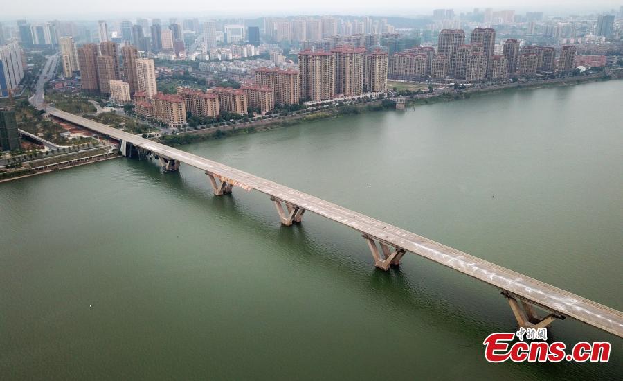 An old bridge before a controlled explosion in Ji’an City, East China’s Jiangxi Province, Sept. 28, 2018. The bridge, 1,577 meters long and 19.5 meters wide, fell into disrepair after heavy traffic amid rapid economic growth. (Photo: China News Service/Hong Yi)