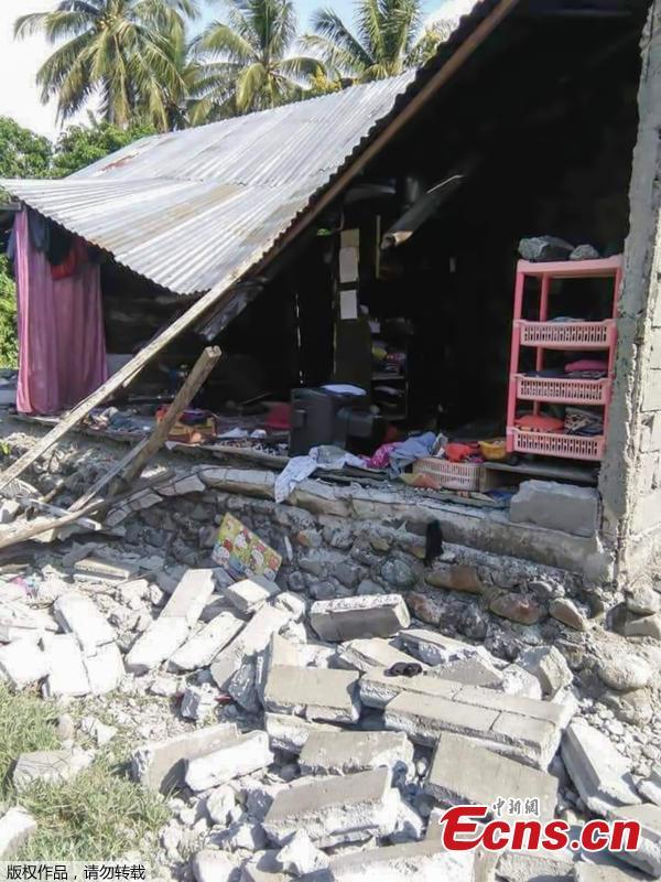 A handout photo made available by the Indonesian National Board for Disaster Management (BNPB) shows a collapsed house after an earthquake that hit in Donggala, Central Sulawesi, Indonesia, Sept. 28, 2018. A tsunami caused deaths when it hit a small city on the Indonesian island of Sulawesi on Friday after a major quake, collapsing buildings and cutting off power, officials said, although the exact number of casualties was not clear.(Photo/Agencies)