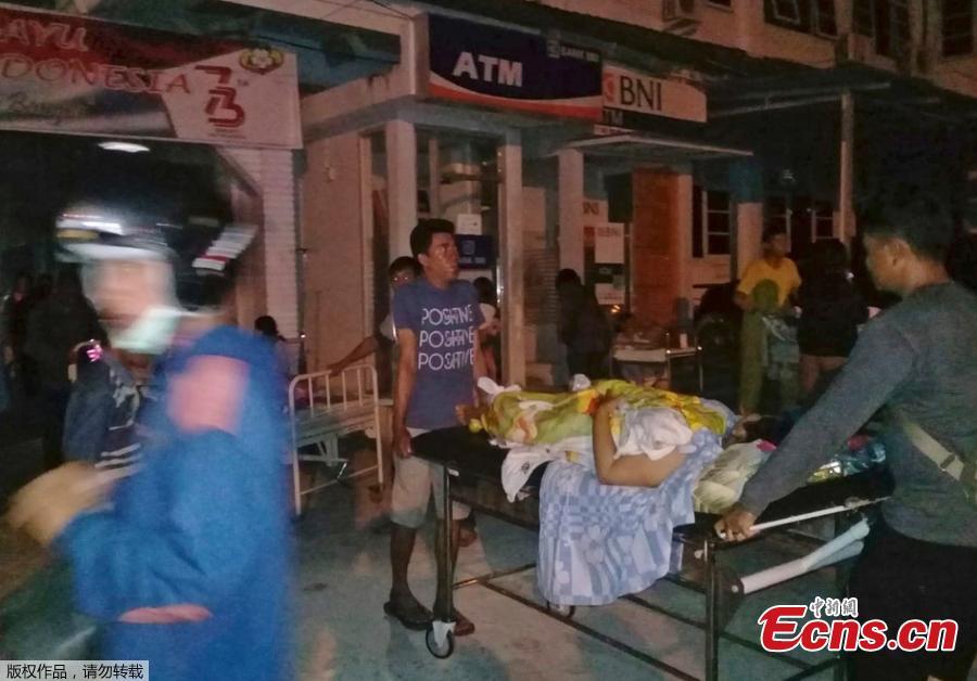 Patients are evacuated from a hospital following a strong earthquake in Poso, central Sulawesi, Indonesia, Sept. 28, 2018. A tsunami caused deaths when it hit a small city on the Indonesian island of Sulawesi on Friday after a major quake, collapsing buildings and cutting off power, officials said, although the exact number of casualties was not clear.(Photo/Agencies)