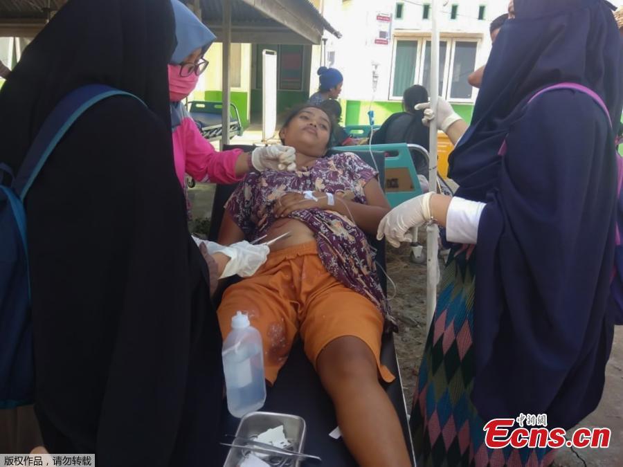 A handout photo made available by the Indonesian National Board for Disaster Management (BNPB) shows a resident receiving medical treatment after an earthquake that hit in Donggala, Central Sulawesi, Indonesia, Sept. 28, 2018. A tsunami caused deaths when it hit a small city on the Indonesian island of Sulawesi on Friday after a major quake, collapsing buildings and cutting off power, officials said, although the exact number of casualties was not clear.(Photo/Agencies)