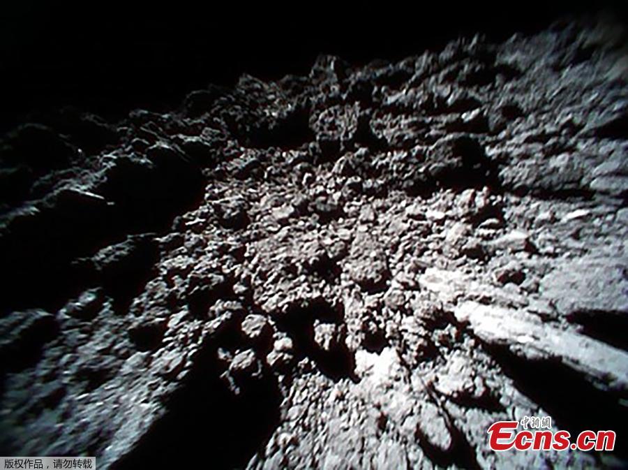 A handout photo made available by Japan Aerospace Exploration Agency (JAXA) shows an image of the surface of asteroid Ryugu, in space, Sept. 23, 2018, captured immediately before hop of Rover-1B. The MINERVA-II1 rovers, Rover-1A and Rover-1B, were deployed on Sept. 21 to explore the surface of asteroid Ryugu. (Photo/Agencies)