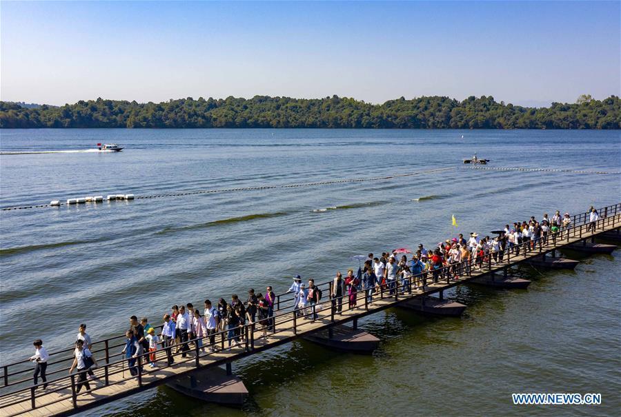 Tourists visit the West Lake scenic area in Hangzhou, capital of east China's Zhejiang Province, Oct. 3, 2018, the third day of the week-long National Day holiday. (Xinhua/Zhuang Yingchang)