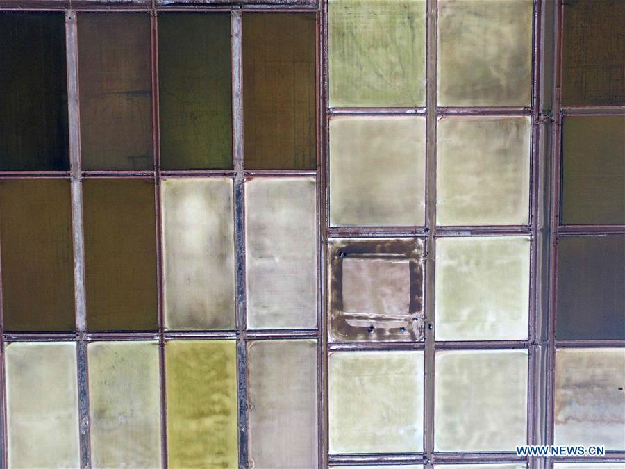 Workers manipulate machines to harvest salt at saltworks in Binzhou City, east China's Shandong Province, Oct. 4, 2018. The saltworks entered the harvest season recently. (Xinhua/Guo Zhihua)