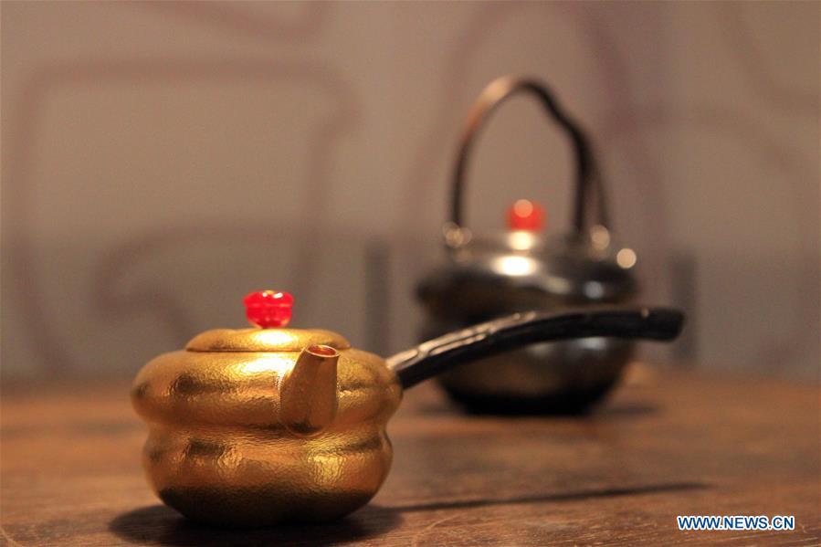 Photo taken on Oct. 4, 2018 shows the tea pots displayed at the Beijing Design Week in Beijing, capital of China. The Beijing Design Week, a platform aimed at promoting the concept of a sustainable development of creative and design industry, last from Sept. 22 to Oct. 7. (Xinhua/Sui Xiankai)