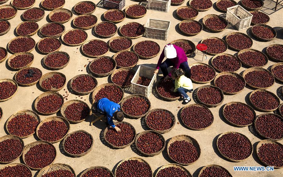 Villagers air red dates in Guantan Village of Xiangfen County in Linfen, north China's Shanxi Province, Oct. 3, 2018. (Xinhua/Wang Wensuo)