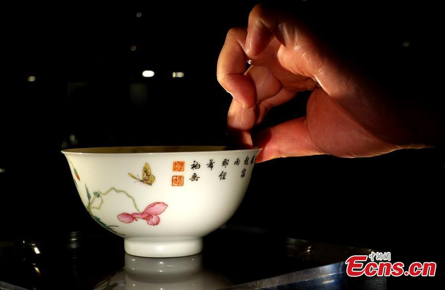 An enameled porcelain bowl with poppy and butterfly designs sold for 169.4 million Hong Kong dollars (21.6 million U.S. dollars) at Sotheby's autumn auctions in Hong Kong. The bowl was previously sold for 292 million Hong Kong dollars in 2003. (Photo: China News/Zhang Wei)