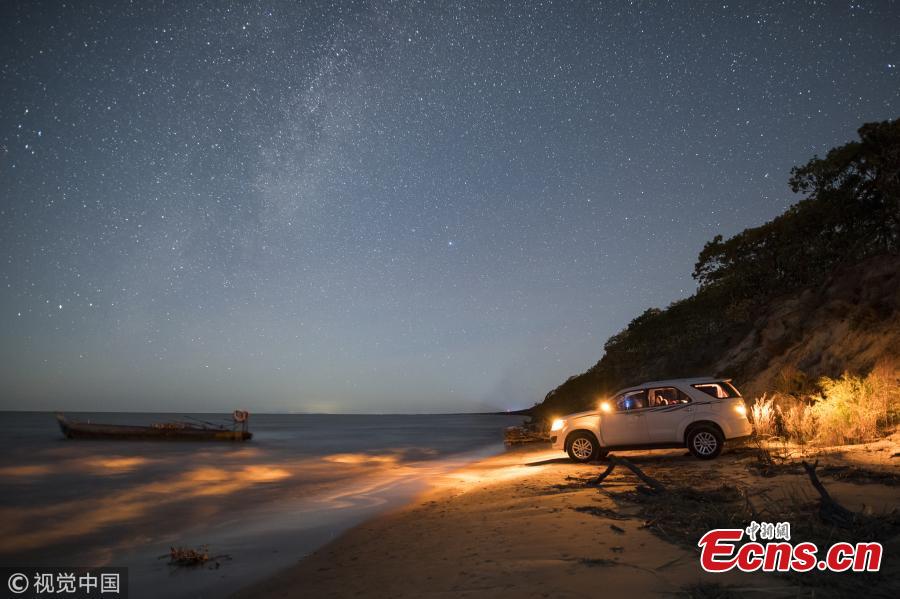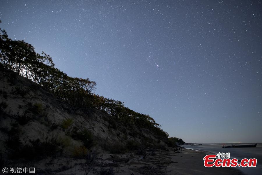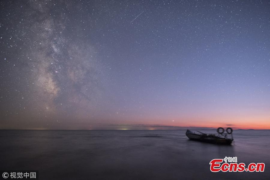 A photo taken on Oct. 3 and 4, 2018 shows the stars in the Milk Way over Xingkai Lake on the border between China and Russia, in Jixi City, Northeast China’s Heilongjiang Province. The lake is known as a great place to observe the stars at night. (Photo/VCG)