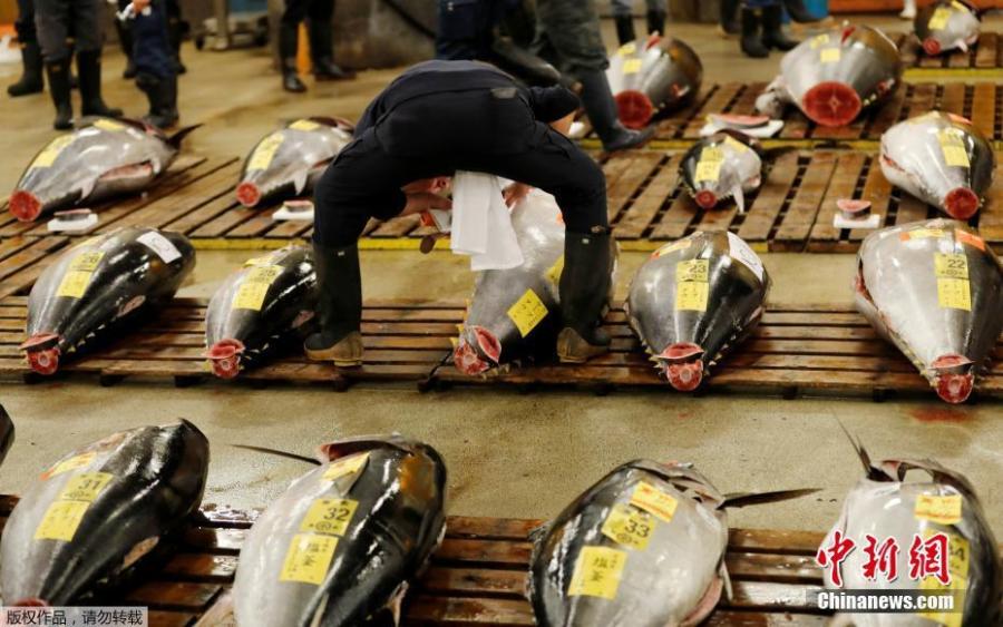 A wholesaler checks the quality of fresh tuna displayed at the last tuna auctions at the Tsukiji fish market before it moves to the new Toyosu market in Tokyo, Japan, Oct. 6, 2018. Tokyo’s famed Tsukiji market, the world’s largest fishmarket and a major tourist attraction, held its final tuna auction on Saturday before a controversial move to a new site next week. The 83-year-old Tsukiji market drew tens of thousands of visitors a year to its warren of stalls with exotic species of fish and fresh sushi. (Photo/Agencies)