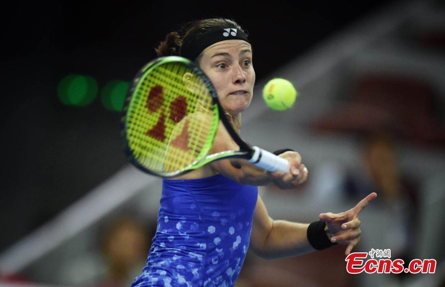 Anastasija Sevastova of Latvia competes against Caroline Wozniacki of Denmark at the final of women’s singles during the China Open in National Tennis Center, Beijing, China, October 7, 2018. (Photo: China News Service/Li Peirun)