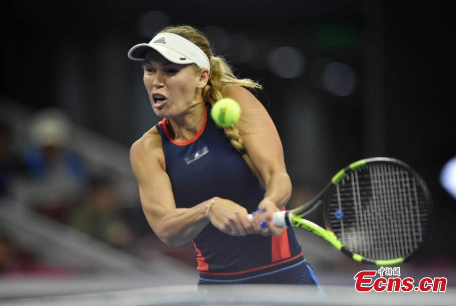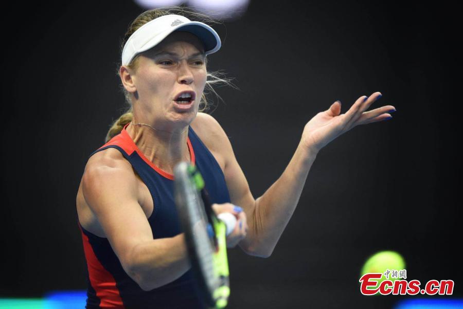 Caroline Wozniacki of Denmark in action against Anastasija Sevastova of Latvia at the final of women’s singles during the China Open in National Tennis Center, Beijing, China, October 7, 2018. (Photo: China News Service/Li Peirun)