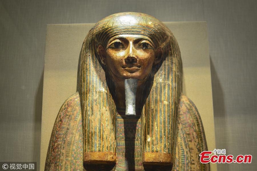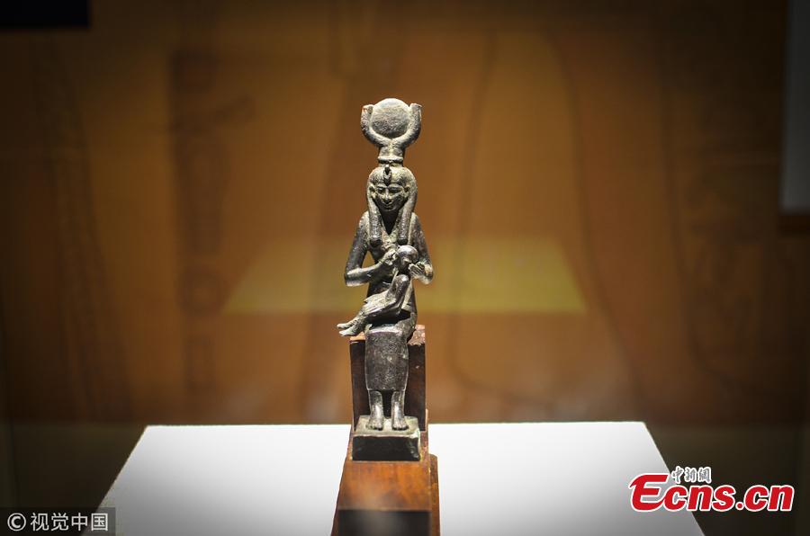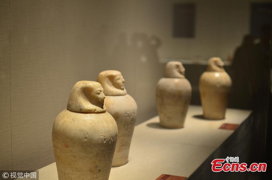 This photo taken on Oct. 7, 2018 shows cultural relics of Ancient Egypt displayed at a museum in Zhejiang. (Photo: VCG/Yin Fujun)