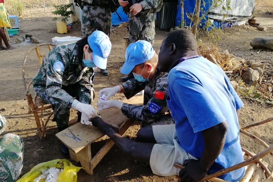 Chinese peacekeepers provide medical care to people in Juba, South Sudan. (Photo/CHINA DAILY)