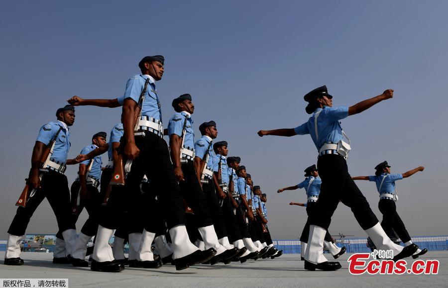 Indian Air Force personnel march during the Air Force Day parade at the Air Force station Hindon in Ghaziabad town on the outskirts of New Delhi on October 8, 2018. Air Force Day is celebrated to mark the day the Indian air force was officially established in 1932. Apart from defending Indian air space, the air force also delivers humanitarian aid and disaster relief material during natural calamities. (Photo/Agencies)