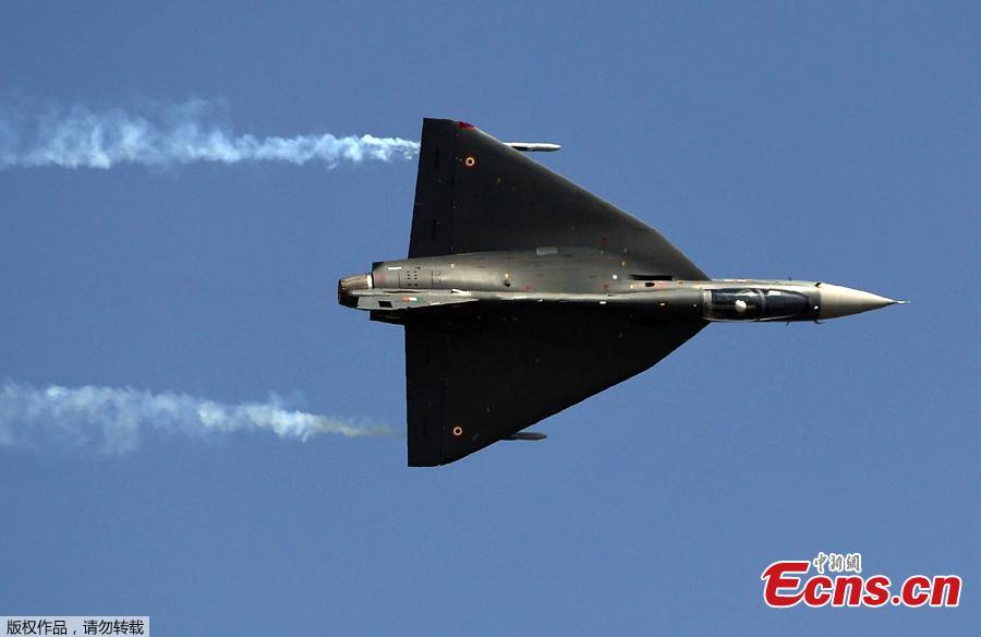 Indian Air Force (IAF) Light Combat Aircraft Tejas fly past during a full dress rehearsal for the Air Force Day parade at the Air Force Station Hindon in Ghaziabad town on the outskirts of New Delhi on October 6, 2018. The Indian Air Force celebrated its 86th anniversary on October 8, 2018. (Photo/Agencies)