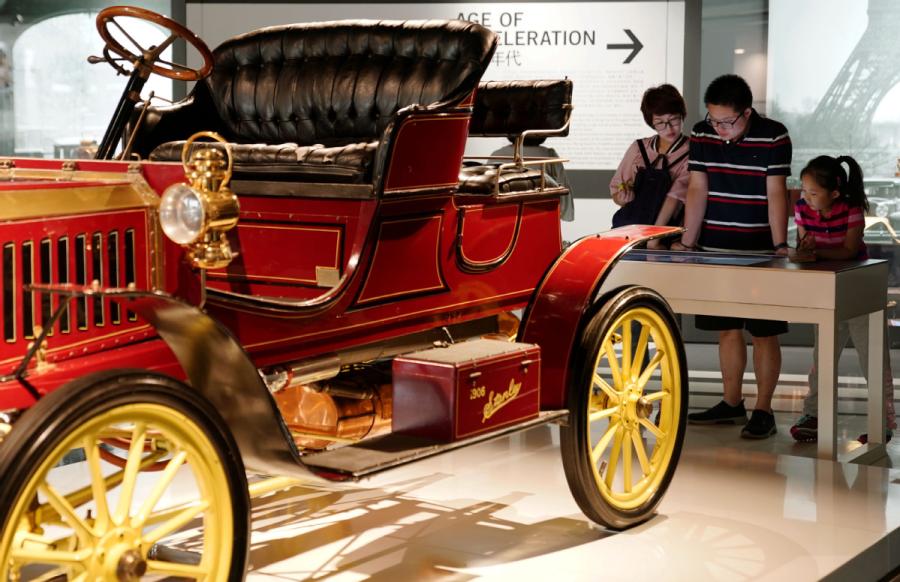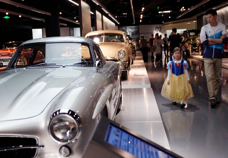 A girl, accompanied by her parents, visits Shanghai Auto Museum in Shanghai on Oct. 7, 2018. (Photo/Xinhua)