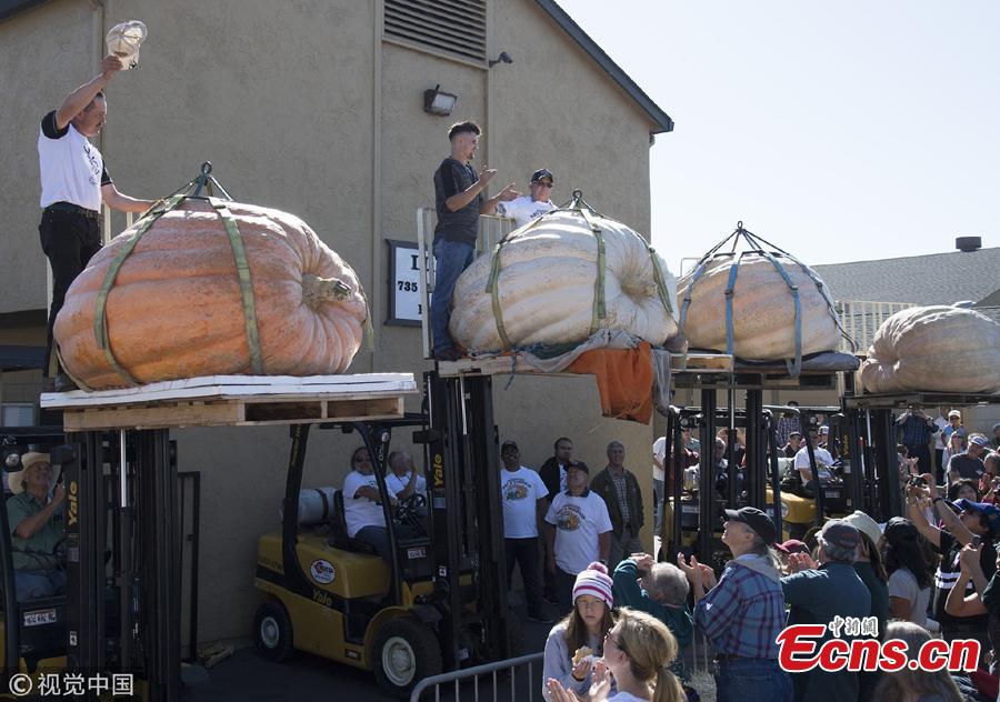 A view of the 45th Annual Safeway World Championship Pumpkin Weigh-Off in Half Moon Bay, California, Oct. 8, 2018. (Photo/Agencies)