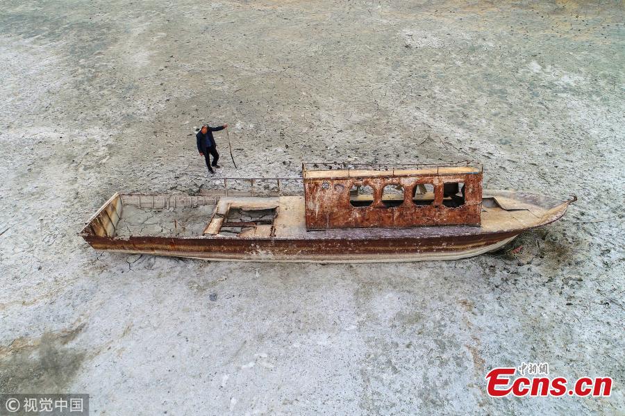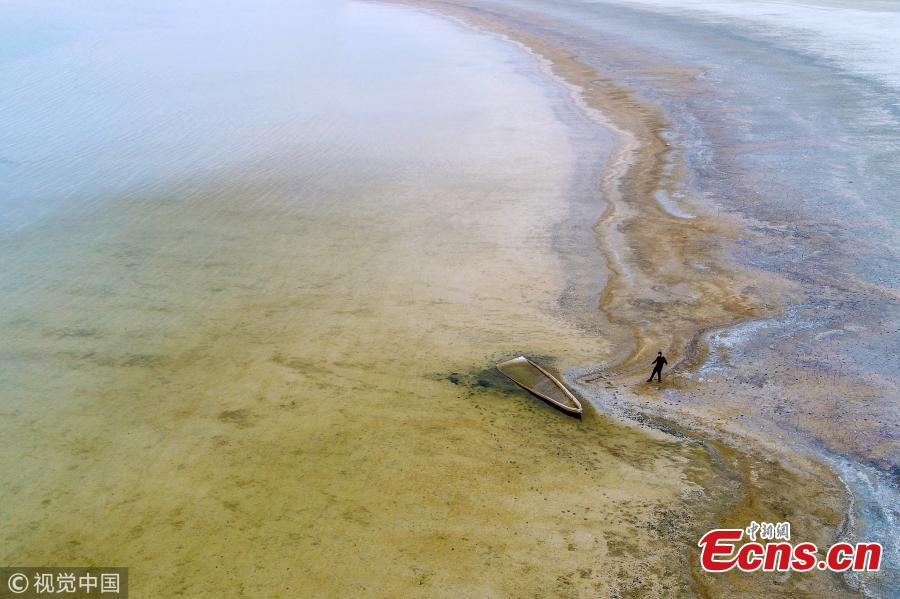 A view of Lake Van in the dry season in Turkey, Oct. 8, 2018. The water level of Lake Van, the biggest in Turkey, has dropped significantly due to lingering drought. (Photo/VCG)