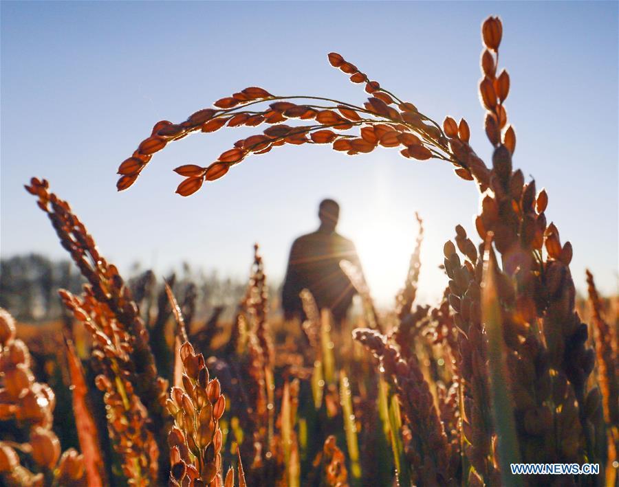 Photo taken on Oct. 10, 2018 shows a farmer working in the field in Qiandaodi Village of Zunhua City, north China's Hebei Province. (Xinhua/Liu Mancang)