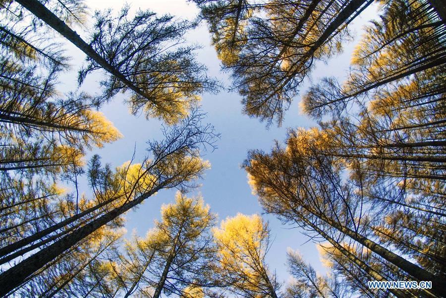 Photo taken on Oct. 7, 2018 shows a scenery in the Saihanba National Forest Park in Chengde, north China's Hebei Province. (Xinhua/Liu Mancang)