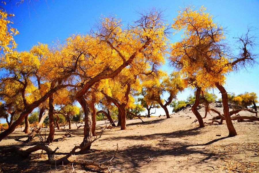 The leaves are changing color on Euphrates poplar trees in Karamay, Xinjiang Uygur autonomous region. (Photo provided to China Daily)