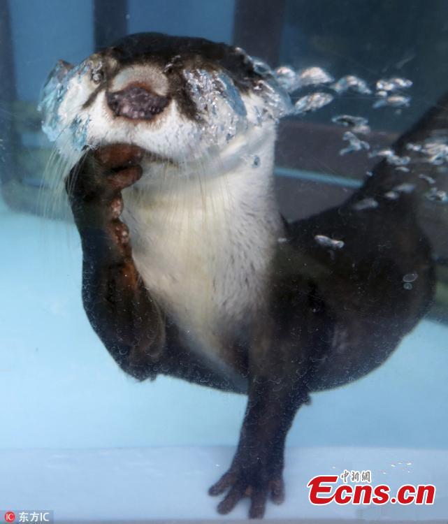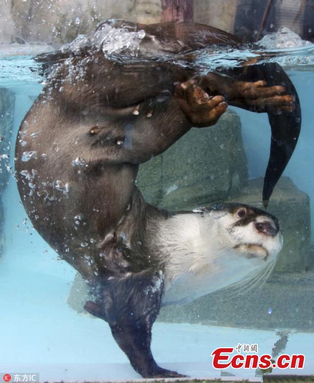 An African clawless otter swims at a water theme park in Mie Prefecture, Japan, Oct. 13, 2018. (Photo/Agencies)