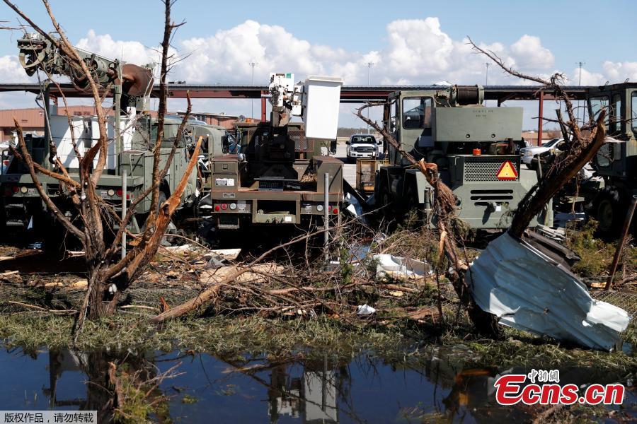 Damage caused by Hurricane Michael is seen on Tyndall Air Force Base, Florida, U.S., Oct. 16, 2018. Tyndall Air Force Base suffered catastrophic damage when Hurricane Michael tore through the Florida Panhandle, ripping roofs off airplane hangars, tossing vehicles around a parking lot and leaving a fighter jet that had been on display flipped over on the ground. (Photo/Agencies)