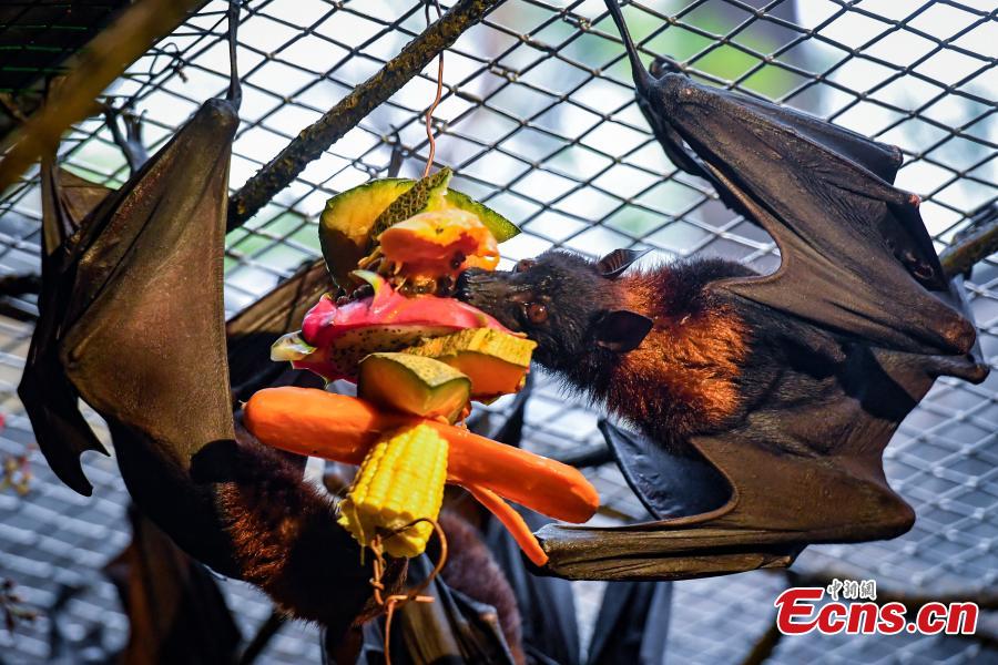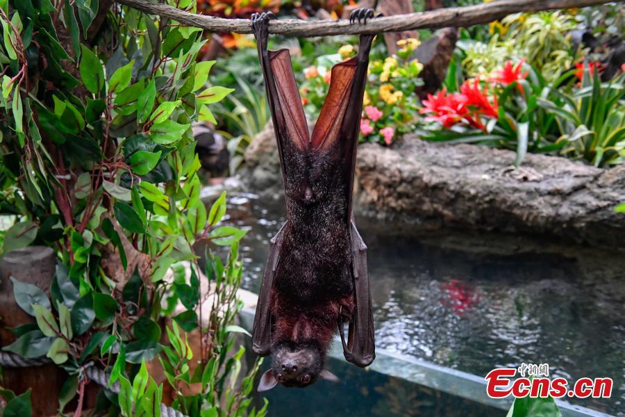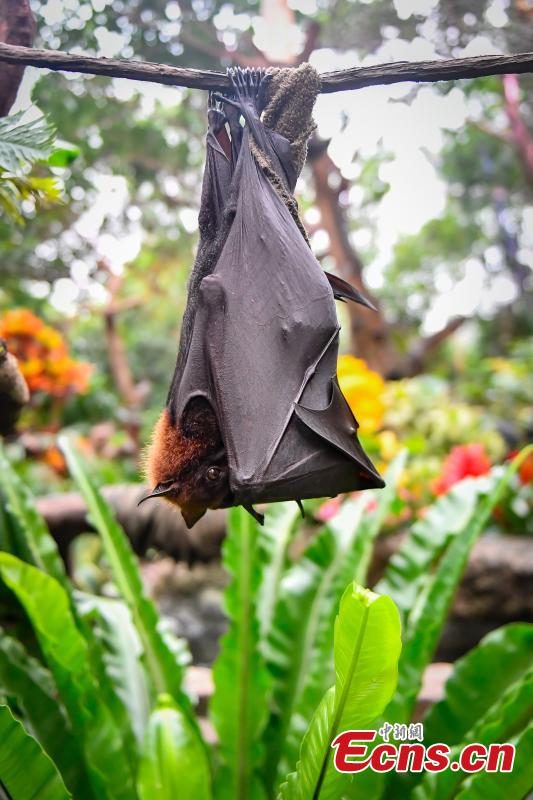Malayan flying fox, one of the world's largest bat species, meet the public for the first time at Chimelong Safari Park in Guangzhou City, Guangdong Province, Oct. 18, 2018. (Photo: China News Service/Chen Jimin)