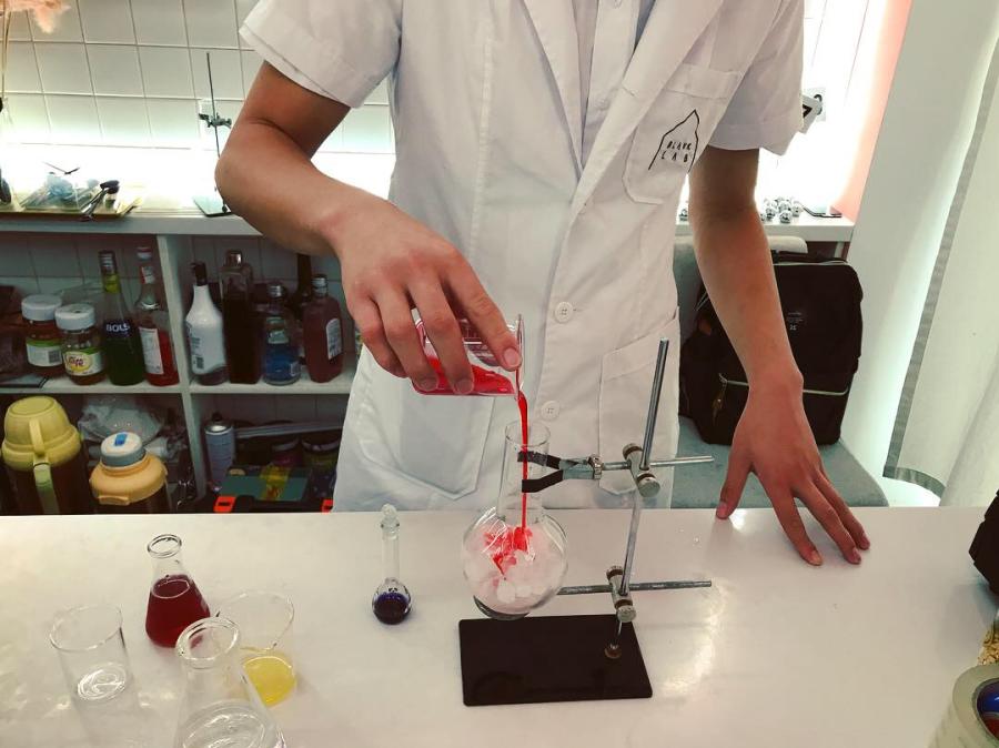 To match with the lab theme, all cocktails on the menu are named after experimental subject numbers and use laboratory flasks as containers. The bubbling pink drink in the flask with a billowing cloud of smoke is one of the most popular cocktails ? "Experimental Subject No.3." It contains vodka, yogurt and watermelon juice, and is popular among the female clientele.