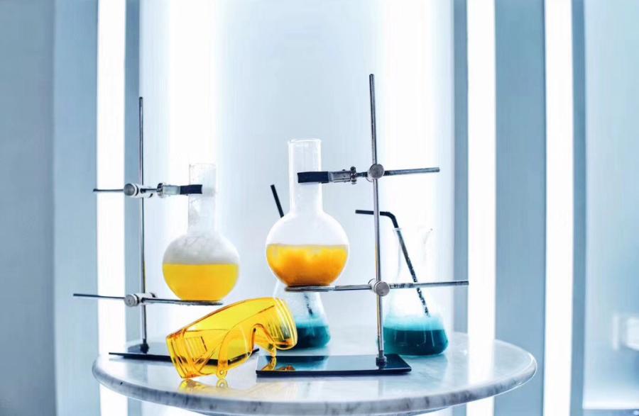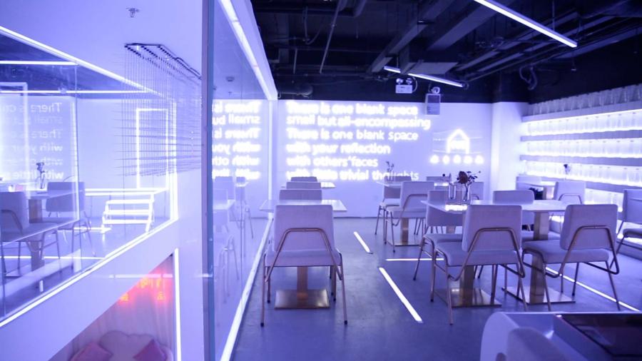 Dramatic lights that change colors and a white minimalist interior give the feeling of a laboratory environment. (Photo/CGTN)