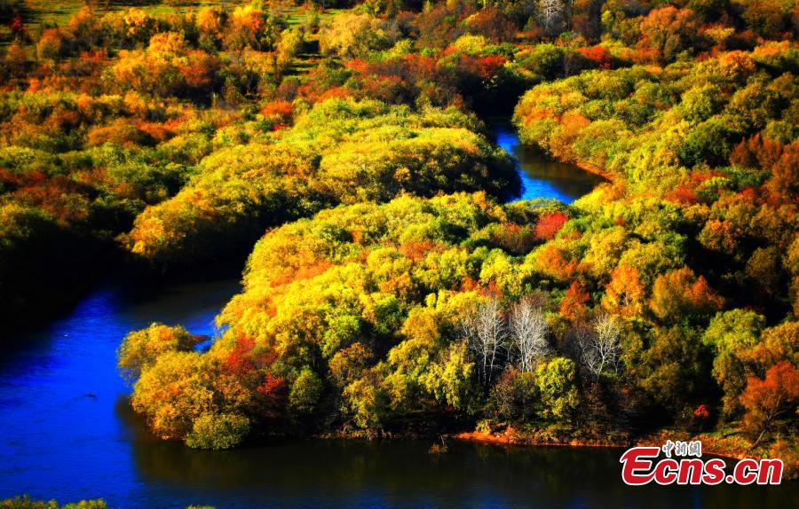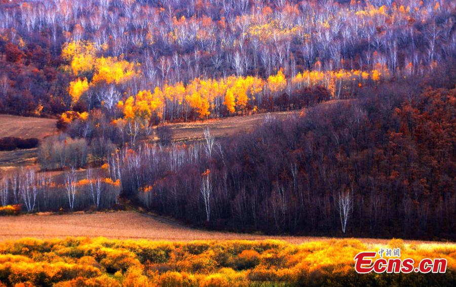 A view of the postcard-like autumn scenery at a forest in the Greater Khingan Mountains, Hulun Buir, North China’s Inner Mongolia Autonomous Region. Hulun Buir is home to 120,000 square kilometers of forest and 80,000 square kilometers of grassland. (Photo: China News Service/Jiang Xiwu)