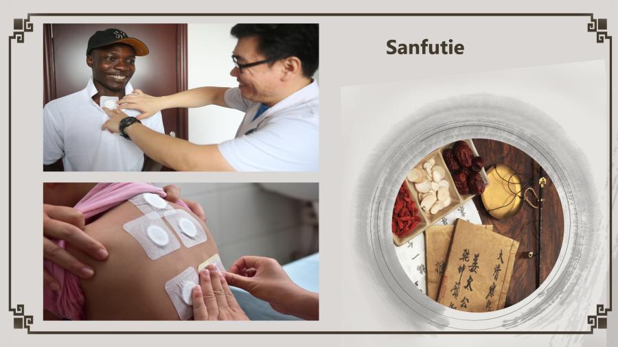 Sanfutie therapy is a popular counter-season TCM treatment, which involves putting plasters made with traditional Chinese herbal medicine on various acupuncture points on the body in summer. The method is based on the concept of treating cold-weather-related illnesses, such as arthritis and asthma, during summer. "Sanfu" (三伏) is the hottest period on the Chinese calendar, and "tie" (贴) means paste. (Photo/China Plus)