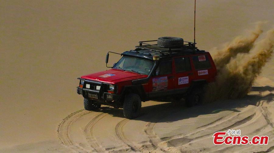 A Jeep off-road race in Qiemo County, Northwest China’s Xinjiang Uygur Autonomous Region, Oct. 21, 2018. Nearly 100 drivers took part in the three-day competition, including a triangular racecourse that passed through the Taklimakan desert. (Photo: China News Service/Wang Xiaojun)