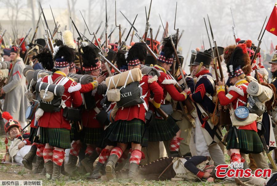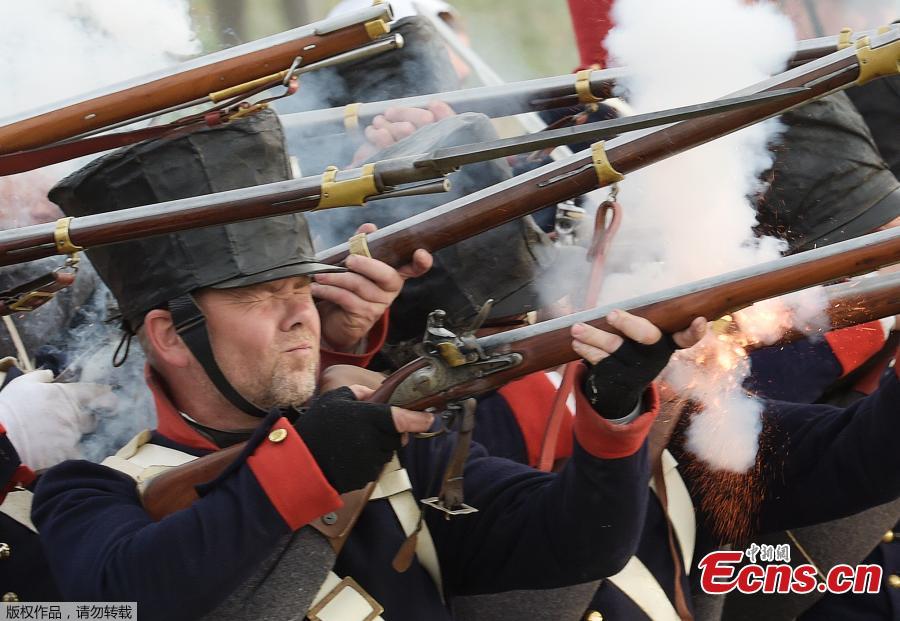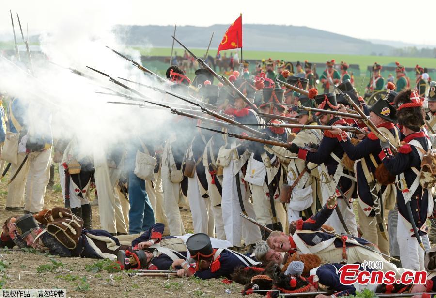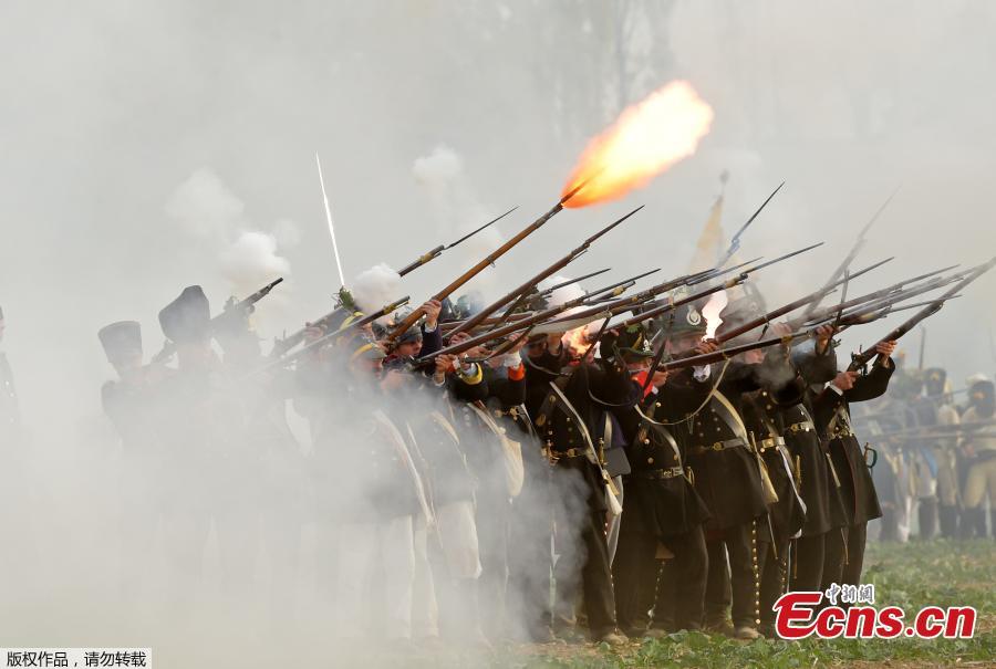 Troops fight during the reconstruction of the Battle of the Nations at the 205th anniversary near Leipzig, Germany, Oct. 20, 2018. The Battle of Leipzig or Battle of the Nations, on 16?19 October 1813, was fought by the coalition armies of Russia, Prussia, Austria and Sweden against the French army of Napoleon. The battle decided that Napoleon had to retreat to France, the beginning of his downfall. (Photo/Agencies)