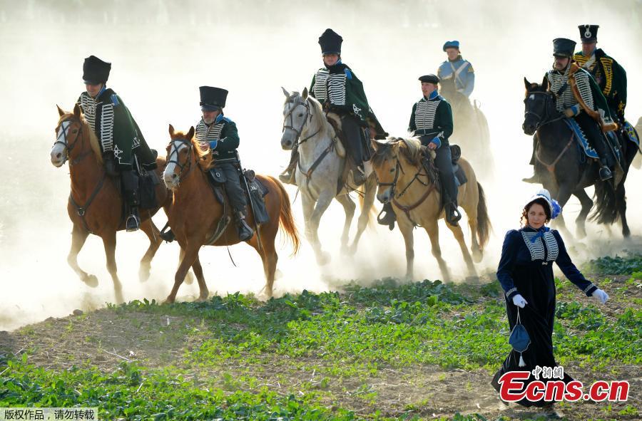 Riders arrive during the reconstruction of the Battle of the Nations at the 205th anniversary near Leipzig, Germany, Oct. 20, 2018. The Battle of Leipzig or Battle of the Nations, on 16?19 October 1813, was fought by the coalition armies of Russia, Prussia, Austria and Sweden against the French army of Napoleon. The battle decided that Napoleon had to retreat to France, the beginning of his downfall. (Photo/Agencies)