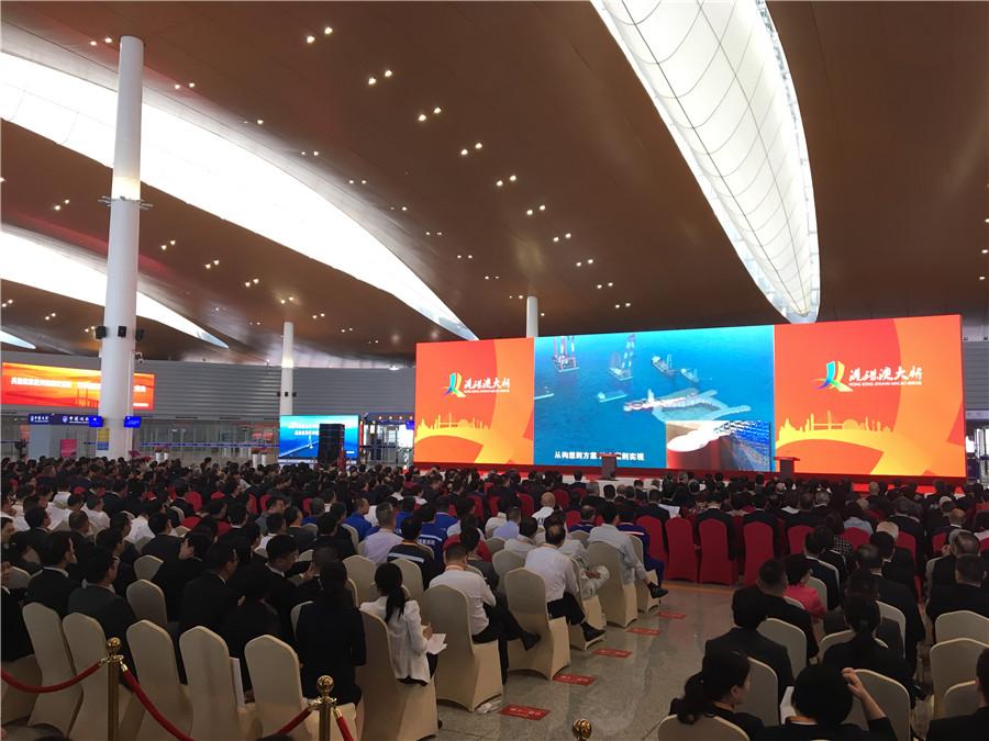 A group of attendees of the Hong Kong-Zhuhai-Macao Opening Ceremony take a photo before the event begins on Tuesday morning. (Photo by He Shusi/China Daily)