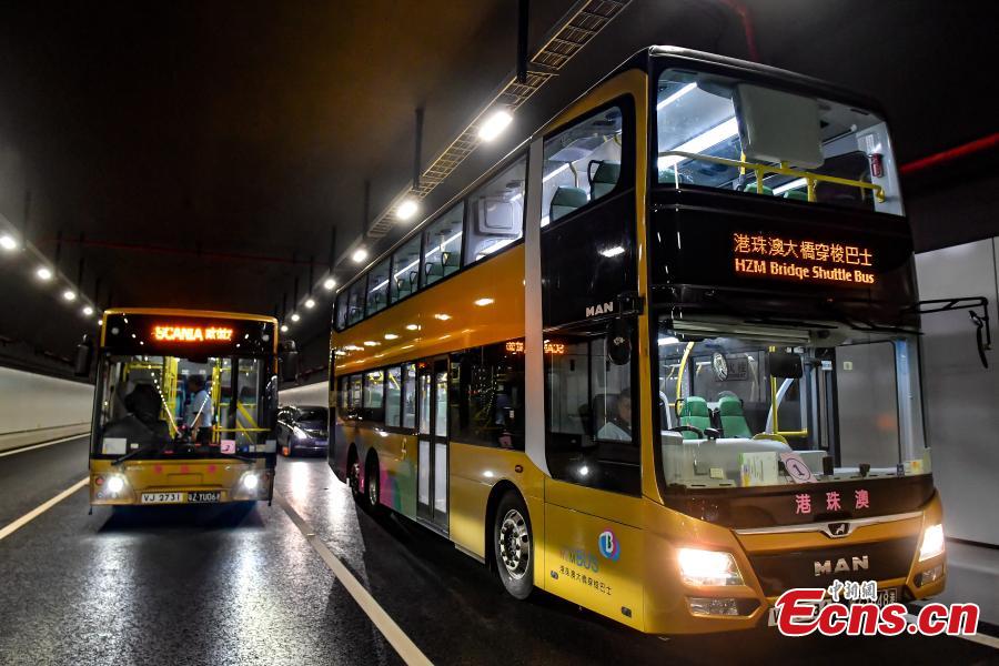 The shuttle bus of the Hong Kong-Zhuhai-Macao Bridge. (Photo: China News Service/Chen Jimin)
