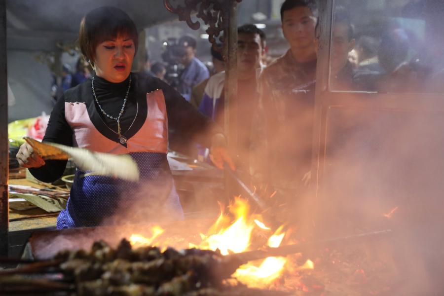 The night food market in Hotan city in Northwest China's Xinjiang Uygur autonomous region, Oct. 22, 2018. (Photo/chinadaily.com.cn)