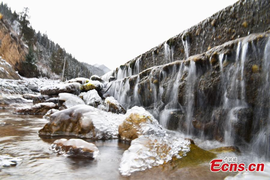 Fresh snow adds charm to trees, a river, and grassland at the foot of Qilian Mountain in Zhangye City, Northwest China’s Gansu Province, Oct. 21, 2018. (Photo: China News Service/Duo Dan)