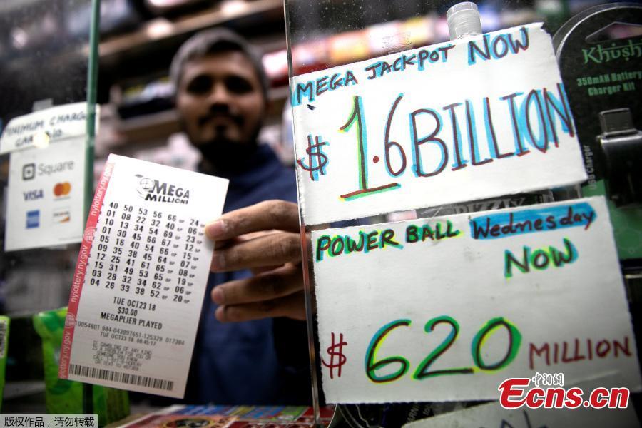 Mega Millions lottery entry tickets are seen in New York City, U.S., Oct. 23, 2018. (Photo/Agencies)
