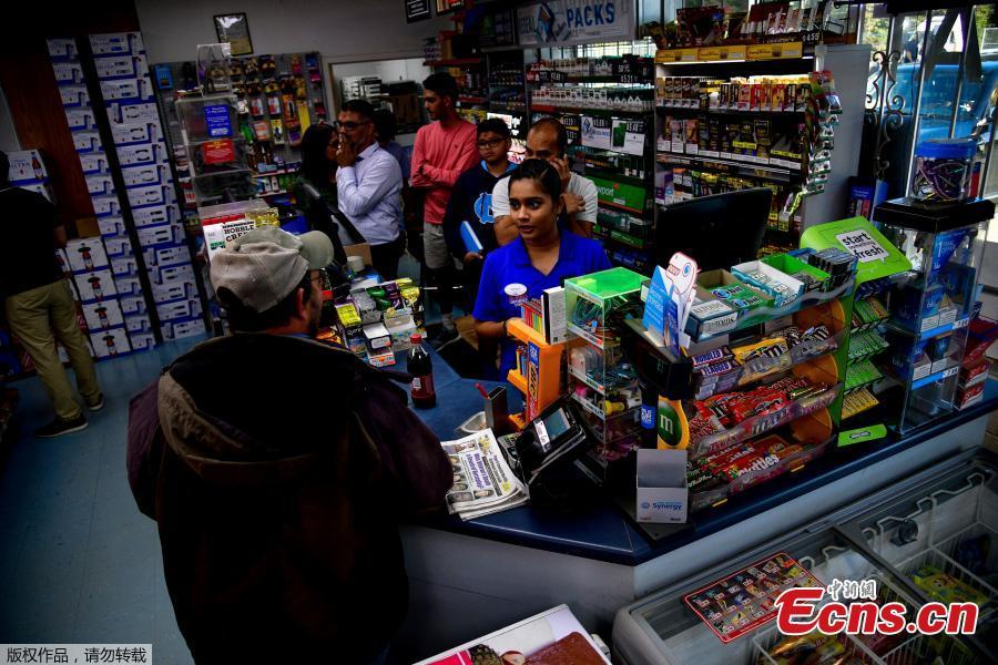 A man buys tickets for Tuesday's Mega Millions lottery drawing after the jackpot exceeded $1.6 billion in New York City, New York, U.S., Oct. 23, 2018. (Photo/Agencies)