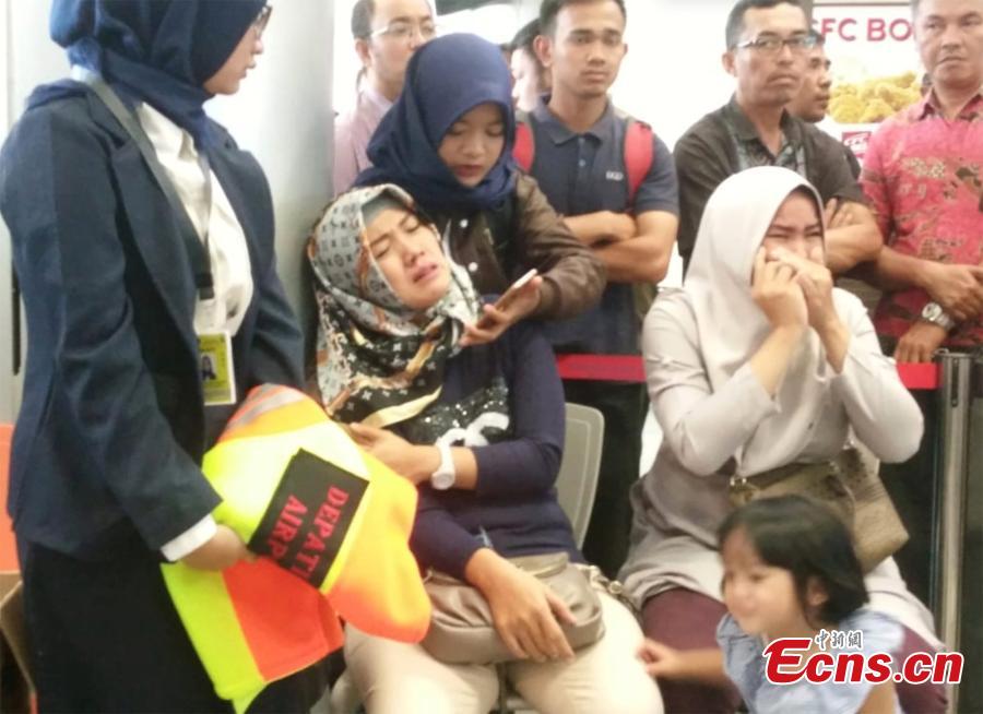 Relatives of passengers of Lion Air flight JT610 that crashed into the sea, cry at Depati Amir airport in Pangkal Pinang, Indonesia, October 29, 2018. (Photo/Agencies)