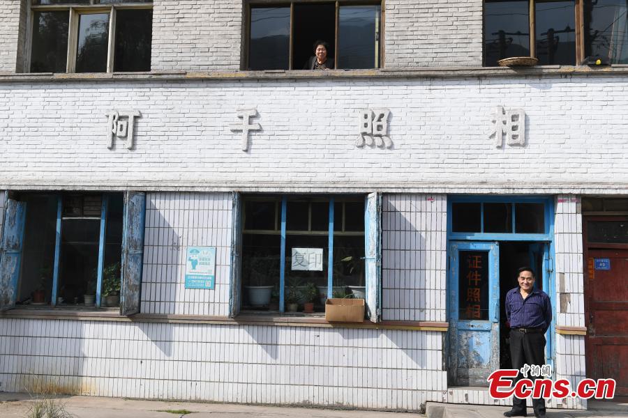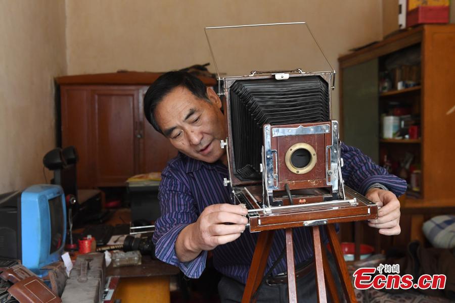 Photographer Wei Jixiong poses for a photo at the Agan Photo Studio in Lanzhou City, Northwest China’s Gansu Province, Oct. 27, 2018. Since Wei began working at the studio in the 1970s, he has continually used film cameras to take photos for customers despite the popularity of digital cameras. (Photo: China News Service/Yang Yanmin)