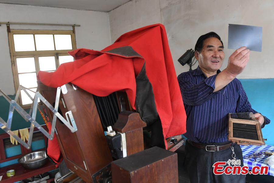 Photographer Wei Jixiong takes photos with an old-fashioned film camera at the Agan Photo Studio in Lanzhou City, Northwest China’s Gansu Province, Oct. 27, 2018. Since Wei began working at the studio in the 1970s, he has continually used film cameras to take photos for customers despite the popularity of digital cameras. (Photo: China News Service/Yang Yanmin)