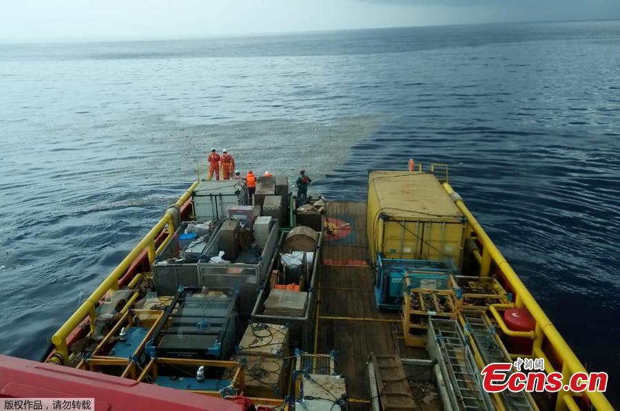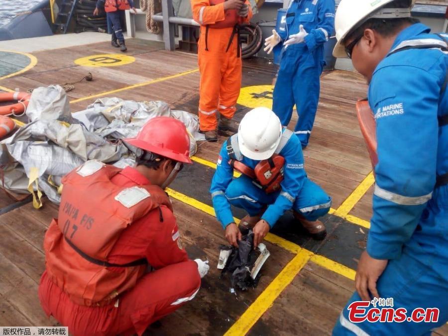 Workers of PT Pertamina stand onboard Prabu ship owned by PT Pertamina as they watch debris of what is believed from the crashed Lion Air flight JT610, off the shore of Karawang regency, West Java province, Indonesia, Oct. 29, 2018. An aircraft with 188 people on board is believed to have sunk after crashing into the sea off Indonesia’s island of Java on Monday, shortly after takeoff from the capital on its way to the country’s tin-mining hub, officials said. (Photo/Agencies)