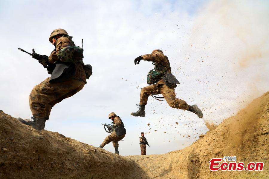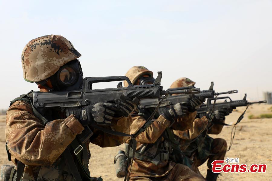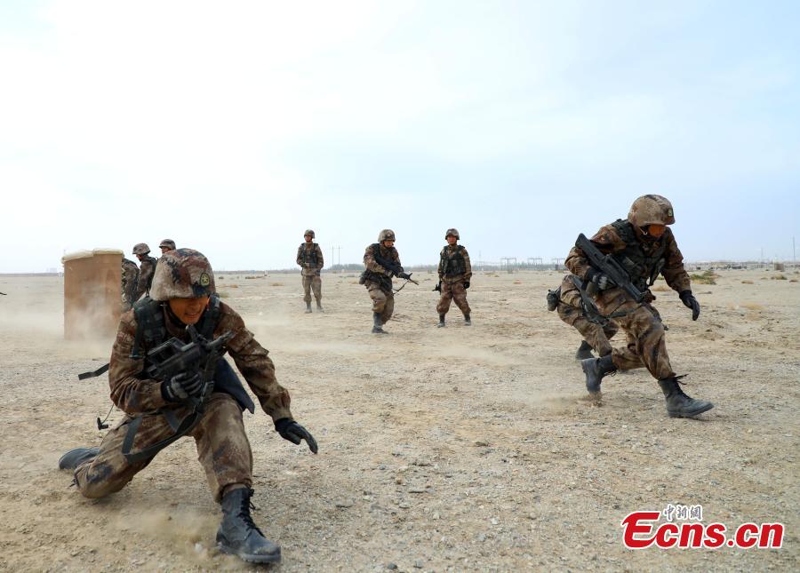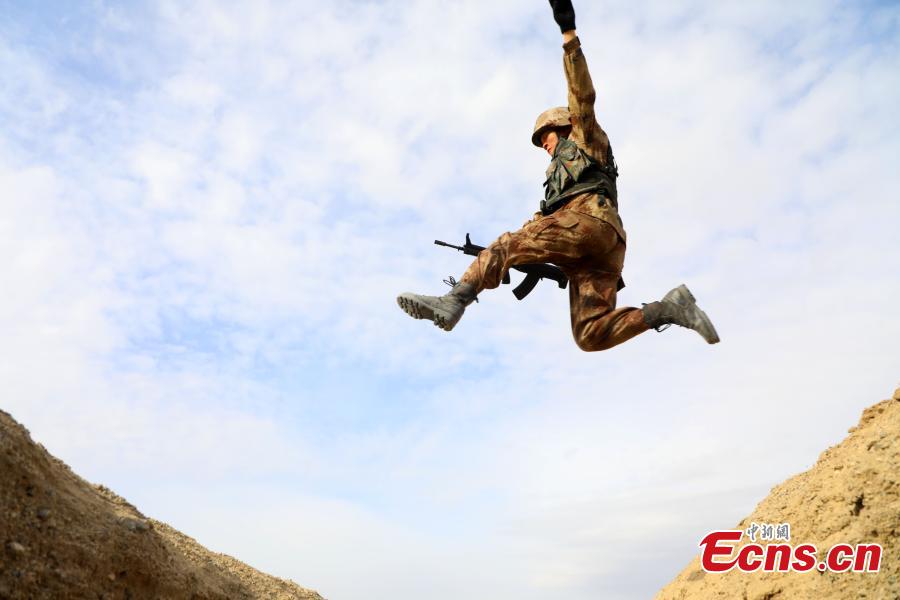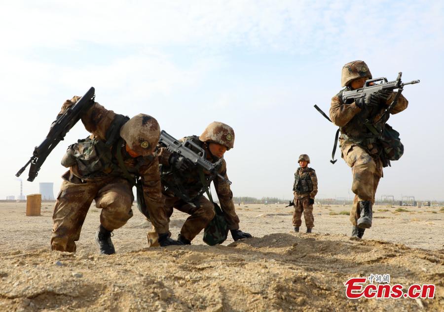 New soldiers undergo training at a military base in Northwest China’s Xinjiang Uygur Autonomous Region, Oct. 29, 2018. The training programs focused on battlefield protection skills. (Photo: China News Service/Luo Xingcang)