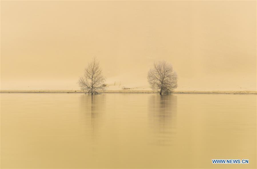 Trees of desert poplar are seen in Yuli County, northwest China's Xinjiang Uygur Autonomous Region, Oct. 17, 2018. Xinjiang has infused 7 billion cubic meters of water to the dry trunk stream of the lower reaches of the Tarim River in 18 rounds of water diversion since 2000, making the local forest of desert poplar a tourist attraction.(Xinhua/Zhao Ge)