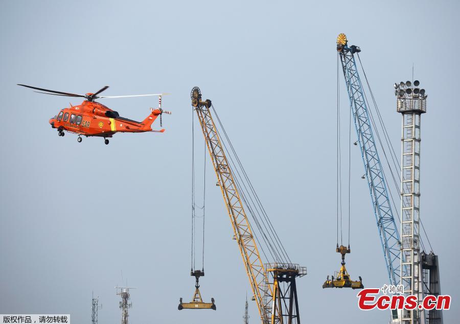 A search and rescue helicopter lands at Tanjung Priok port where the operations for the crashed Lion Air flight JT610 is based, in Jakarta, Indonesia, Oct. 30, 2018. Indonesia on Tuesday stepped up a search for an airliner that plunged into the sea with all 189 aboard feared dead, deploying underwater beacons to trace its black box recorders and uncover why an almost-new plane crashed minutes after take-off. (Photo/Agencies)